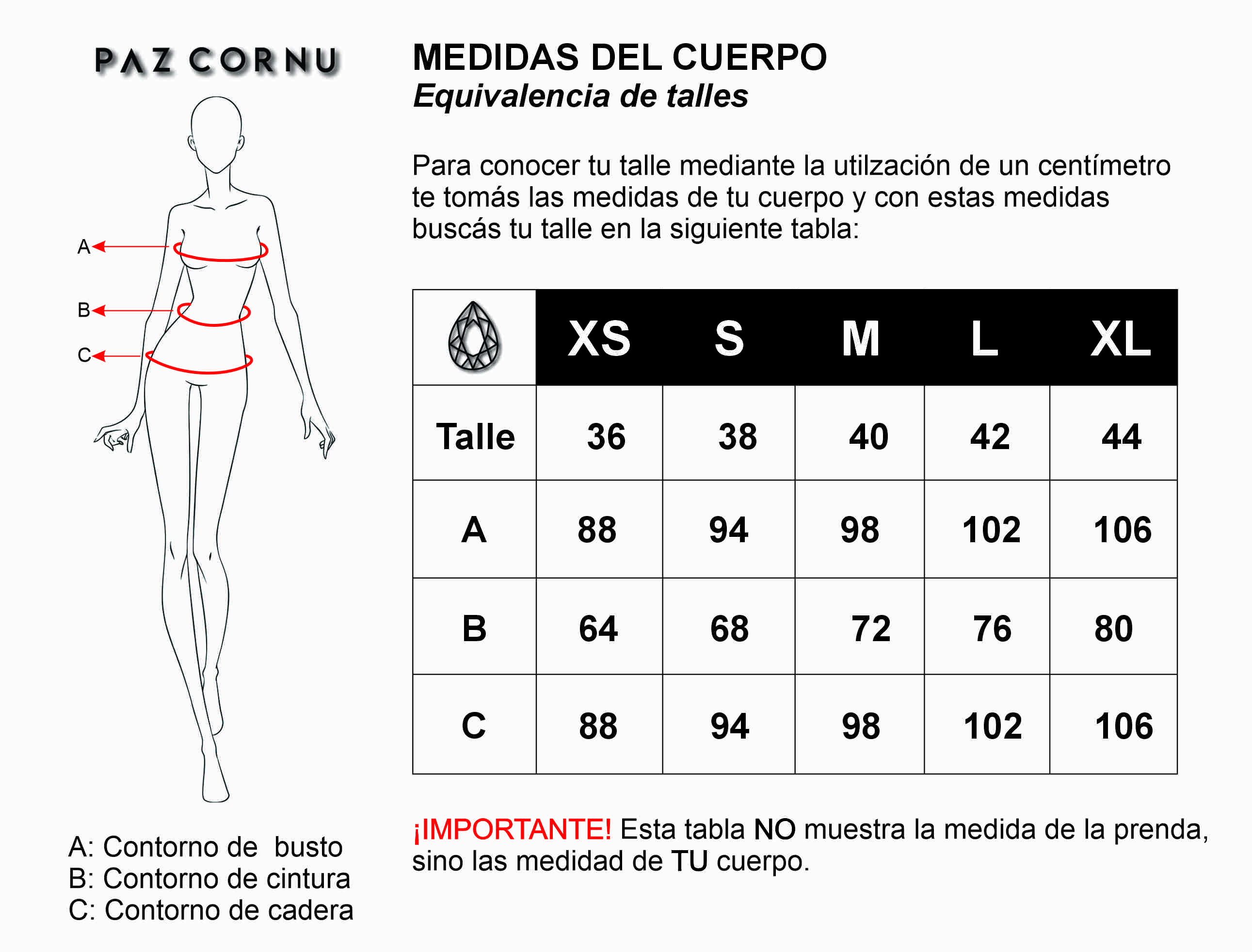 Sabemos lo importante que es sentirte cómoda y segura con lo que llevás puesto. Por eso, te compartimos nuestra tabla de talles genérica para ayudarte a elegir el fit perfecto. Tené en cuenta que algunas prendas pueden tener una moldería particular. Si tenés dudas sobre un talle específico, podés escribirnos por WhatsApp y te asesoramos de forma personalizada.